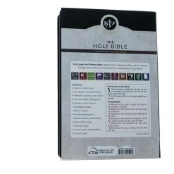 Classic Brown Faux Leather Bound Large Print Edition King James Bible. The cover is constructed of quality man-made material imported from Italy, with the look and feel of real leather (trade name LuxLeather). Design features include a detailed engraved decorative border with gold foil accents on the front and back, gold foiled debossed title, gold gilt-edged pages with thumb indexing and an attached ribbon page marker. Inside, you’ll find reader-friendly subheadings, a double-column format, a helpful Scripture verse finder by topic and a one-year Bible reading plan. 1002 Pages.Fits in Christian Art Gifts Large Size Bible Cover1002 Gold Gilt-Edged PagesFaux Leather Flexcover BoundThumb IndexingLay-Flat SpineAttached Ribbon Page MarkerUnique Scripture Verse FinderOne-Year Bible Reading Plan