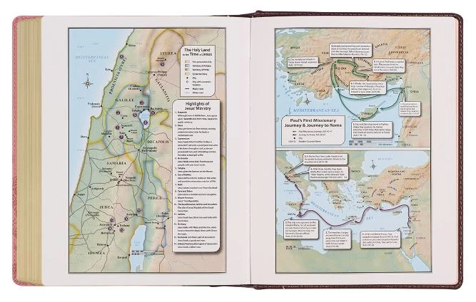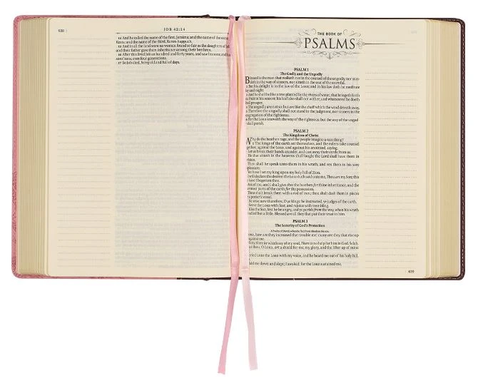 Never forget what you have learned about a passage when you note it in the wide margins of the Brown and Pink Faux Leather Hardcover Note-taking Bible.