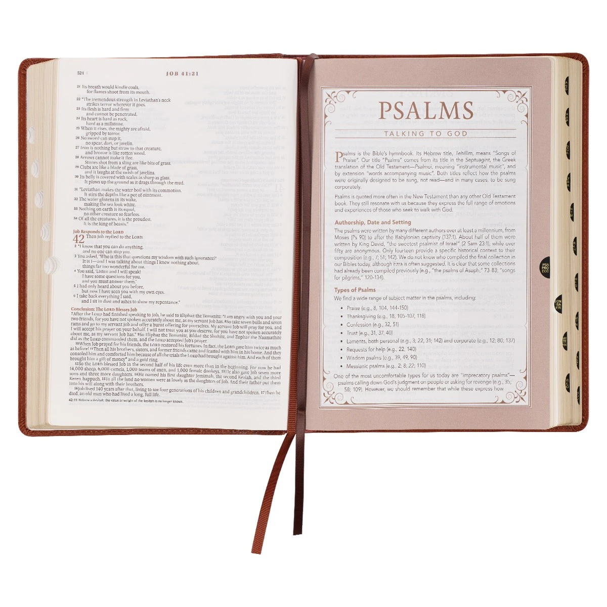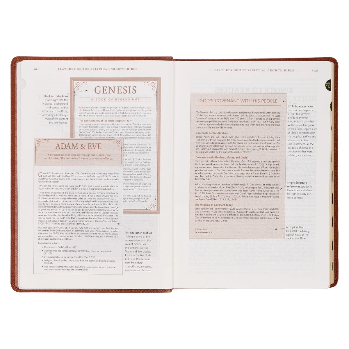 When something does not grow, it dies. But when it does grow, it produces fruit. The Saddle Tan Faux Leather Spiritual Growth Bible is designed to grow