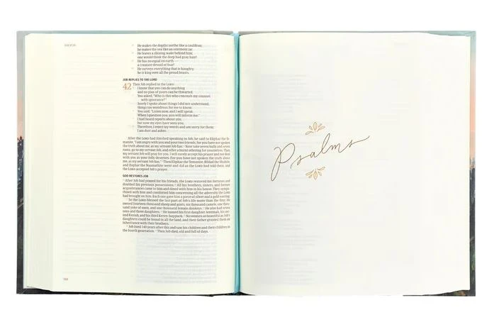 The breathtaking mountain landscapes of Bend, Oregon inspired the artwork of the Bend CSB Notetaking Bible. The beautiful, blue mountains contrast with