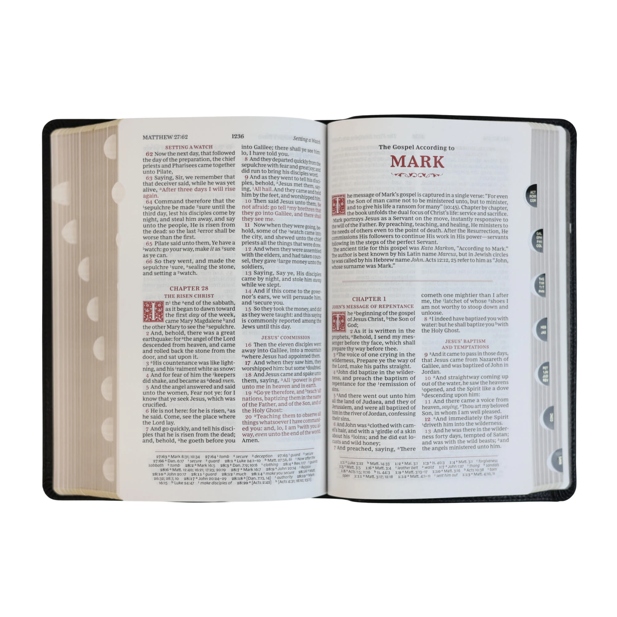 This beautiful Bible edition honors the legacy of the King James Version Bible in a convenient portable size with essential study tools and traditional