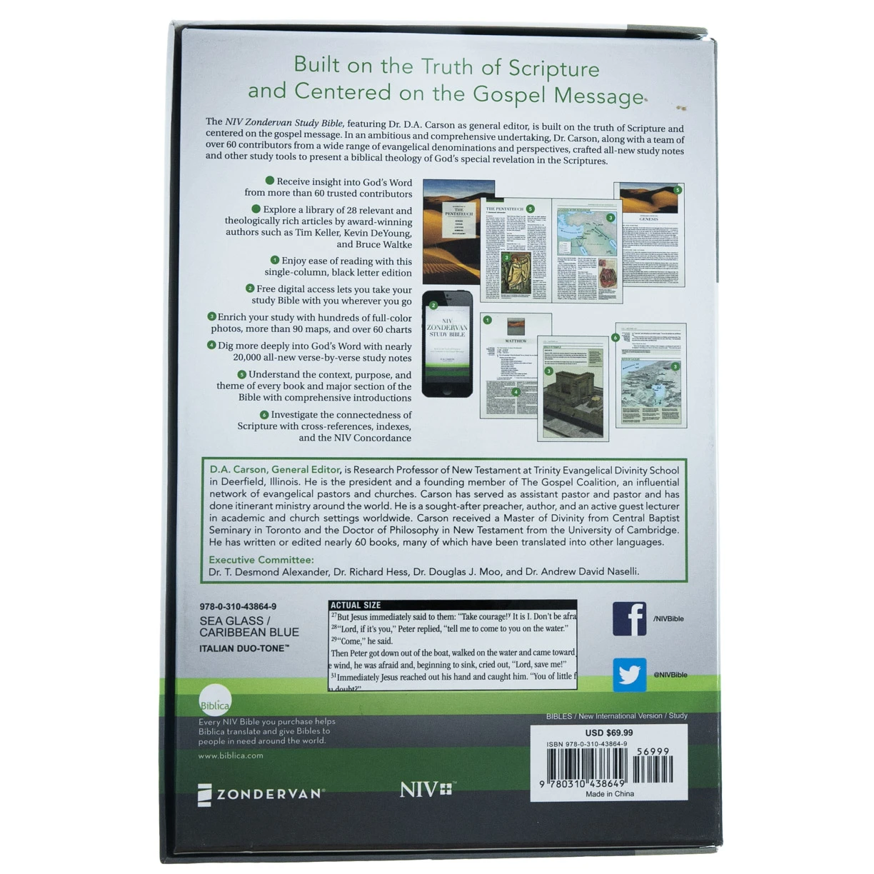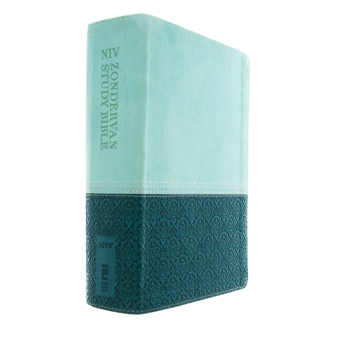 NIV Zondervan Study Bible, Personal Size, Imitation Leather, Light Blue/Turquoise: Built on the Truth of Scripture and Centered on the Gospel MessageThe first-ever study Bible infused through and through with Biblical theology! Built on the NIV and based on the latest in Biblical scholarship, the NIV Zondervan Study Bible is full of robust new study features that work together to unpack God’s story in a fresh, powerful, life-changing way.7.9-point type size