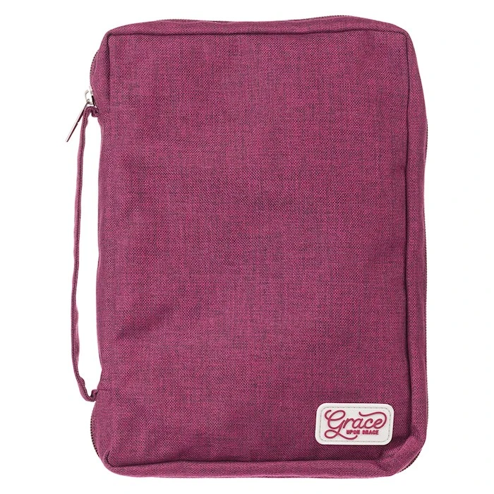 The long-lasting Plum Poly-canvas Value Bible Cover with Grace Badge is just what you need to protect your Bible on your way to church, small group, or