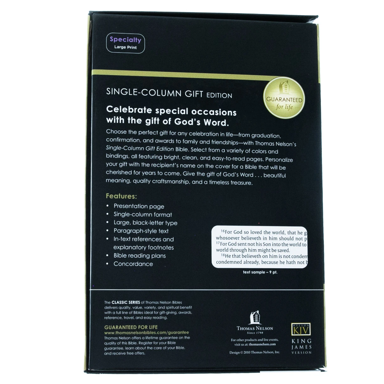 The beautifully designed KJV Single-Column Bible provides a more natural flow of text, elegantly proportioned for pure reading enjoyment. Large-print and