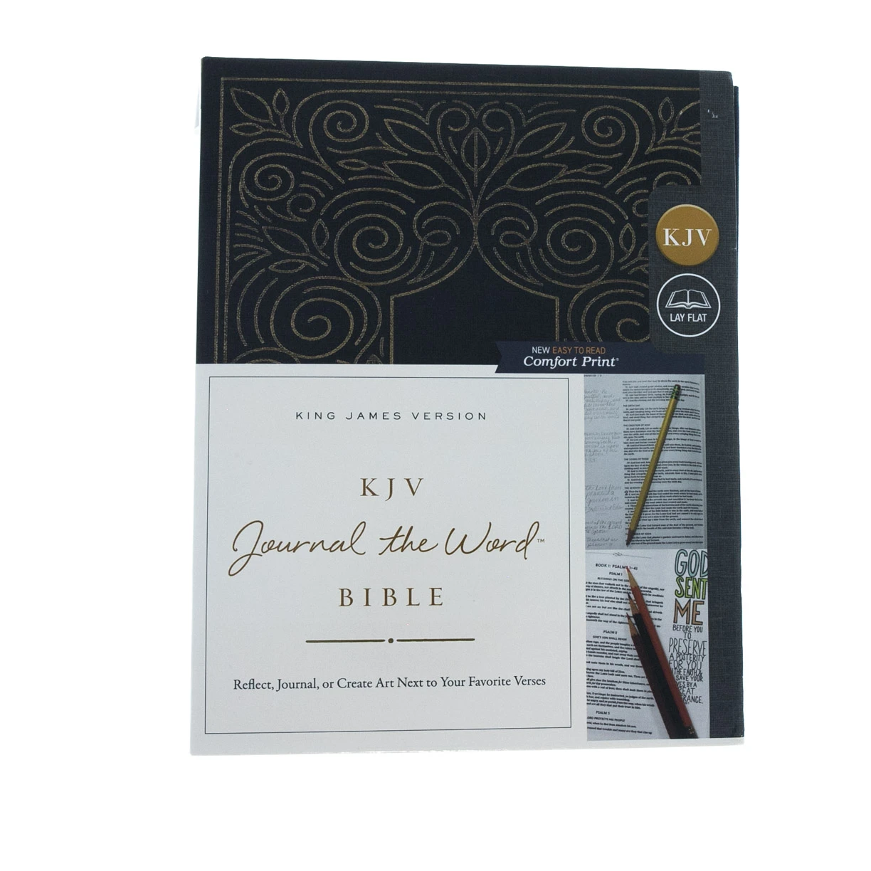 Do you underline Scripture, take notes during sermons, or express your thoughts through journaling? The KJV Journal the Word™ Bible is a trustworthy and indispensable resource for anyone who puts pen to paper for deeper engagement with God’s Word. The extra-wide lined margins make this Bible ideal for note taking or journaling.The KJV Journal the Word™ Bible is truly inspirational from cover to cover and sure to make an excellent gift as a treasured personal keepsake. The Thomas Nelson KJV Comfort Print® typeface is designed to honor the timeless beauty of the King James Version, providing a particularly smooth reading experience for longer engagement in God’s Word.Features include:Designed with the exclusive Thomas Nelson KJV Comfort Print® typefaceLined, wide margins for notes and reflectionsPremium paper for enduring note-takingWords of Christ in redLays flat in your hand or on your deskTwo ribbon markersEasy-to-read 8-point print size