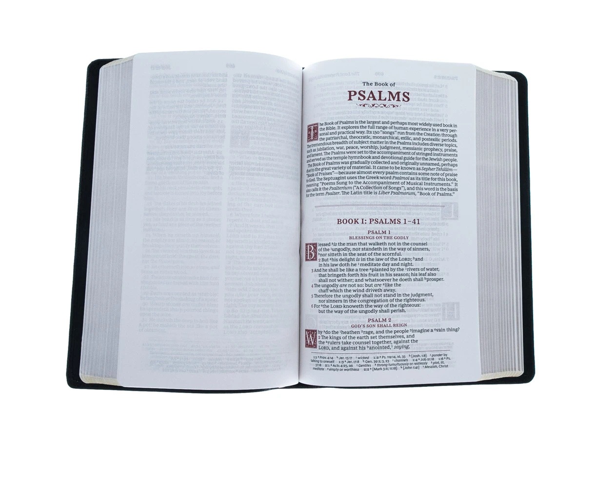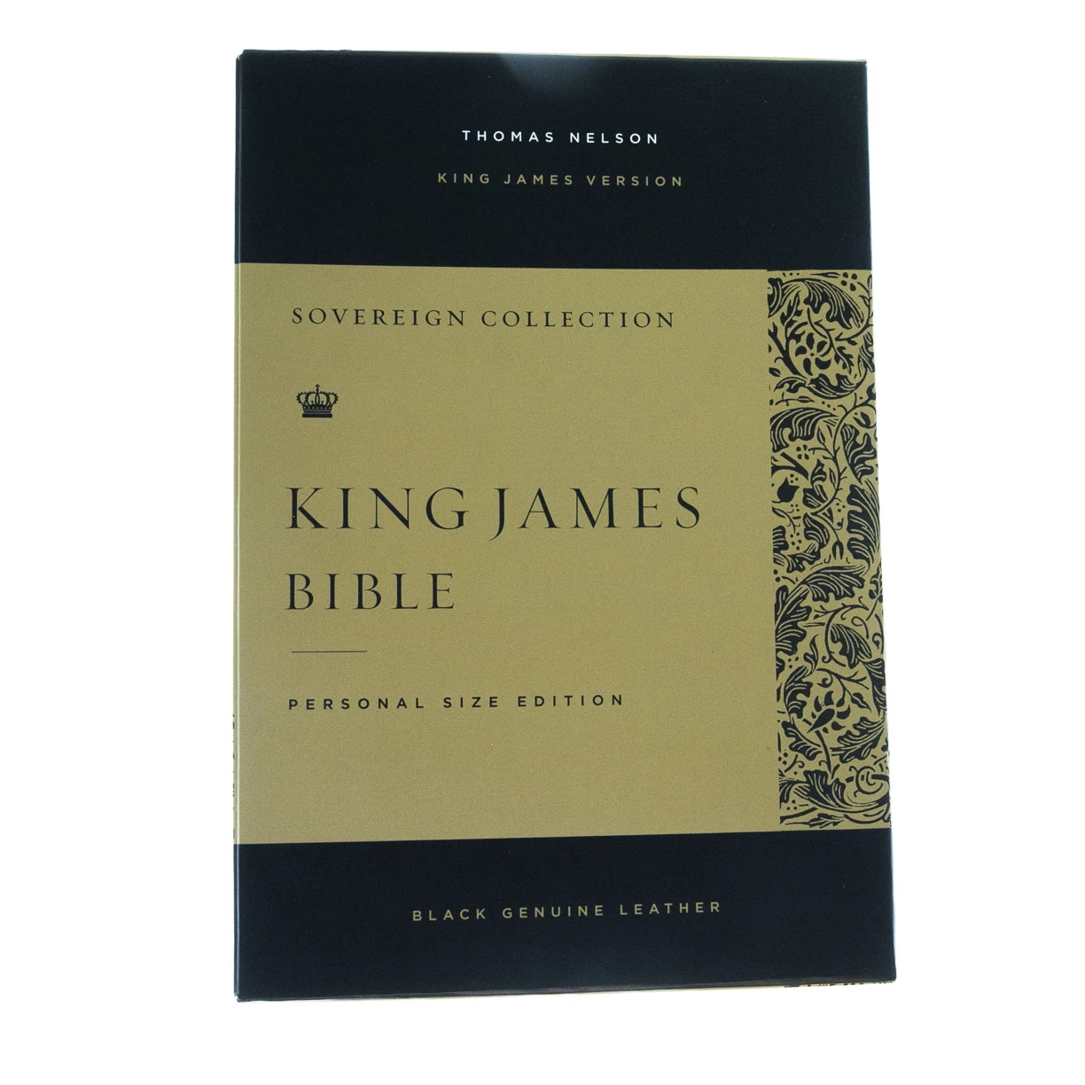 This beautiful Bible edition honors the legacy of the King James Version Bible in a convenient portable size with essential study tools and traditional red-letter text for the Words of Christ.The Sovereign Collection continues Thomas Nelson’s long history and stewardship publishing Bibles. King James Sovereign Collection editions draw from the legacy of the trustworthy and timeless KJV with elegant drop cap illustrations leading into each chapter, the exclusive Comfort Print typeface inspired by centuries-old Thomas Nelson editions, and more classic Bible details.In 1611, the King James Version Bible, also known as the Authorized Version, was published. Nearly 50 of the day’s finest scholars, all from the Church of England, had been organized into six groups for the task. Using the Bishop’s Bible of 1568 as the basis for this revision, the Old Testament was translated from Hebrew and the New Testament from Greek. The completed work was then peer-reviewed before being sent to bishops and other church leaders for their examination, and ultimately to King James, monarch of England and Scotland, for his approval. Today, more than 400 years since its initial publication, the bestselling King James Version Bible continues to inspire, encourage, and strengthen people from all walks of life. The KJV is considered one of the most influential and beautiful works of literature in the English language and continues to be the favorite translation for millions of Christians.Features include:Line-matched classic 2-column formatExtensive end-of-page cross referencesTranslation notesPresentation pageBible book introductionsWords of Christ in redConcordanceFull-color mapsTwo satin ribbon markersGilded page edgesDurable and flexible Smyth-sewn bindingClear and readable KJV Comfort Print9.5-point print size
