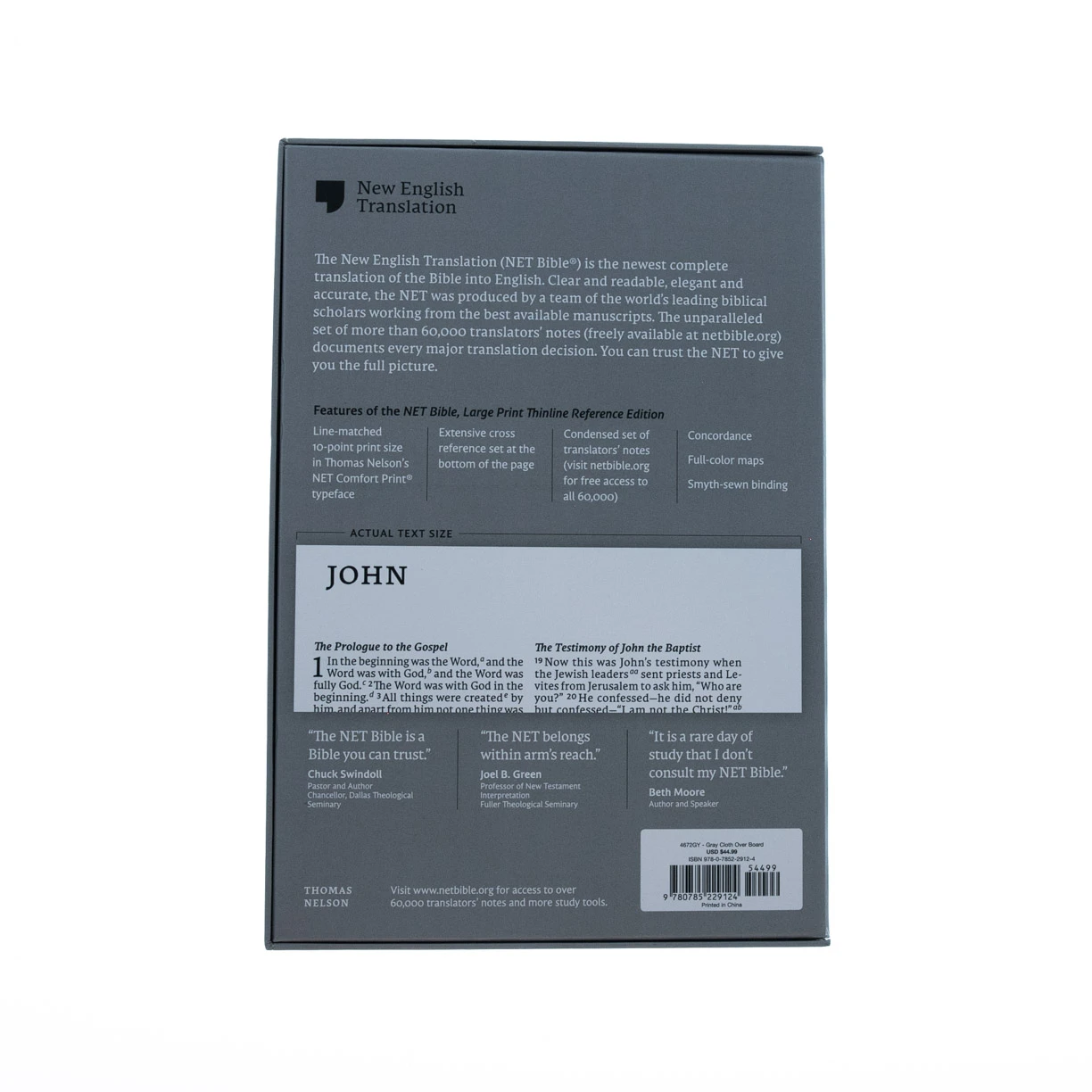 Thomas Nelson NET Bible, Thinline Reference, Large Print, Cloth Over Board, Gray