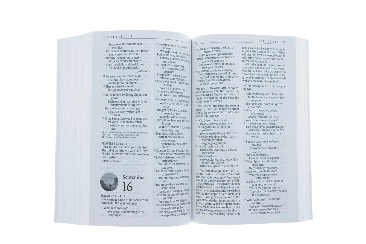 The One Year Bible, which helps you read the entire Bible in one year in as little as 15 minutes a day, has a fresh, new look. The One Year Bible guides