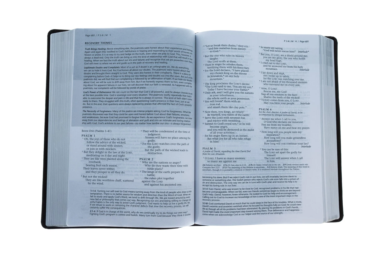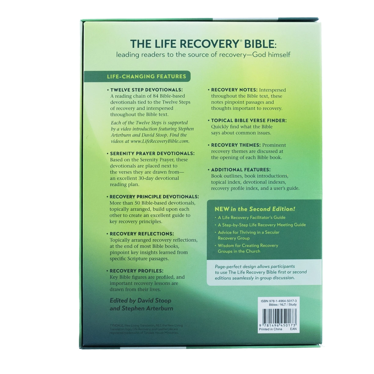 Tyndale’s Life Recovery Bible is the #1?selling recovery Bible with over 3 million copies in print. This Bible for addiction points to God himself as the primary source of recovery with essential tools and features that help free people from the grip of addiction. It is widely used in tangent with the 12 Step recovery programs, in correctional facilities, and by individuals seeking help taking their life back from behaviors and substances that have held them captive.This Second Edition of The Life Recovery Bible is updated with new articles on addiction recovery as well as a step-by-step life recovery meeting guide for leaders. This NLT Bible is essential to anyone starting or running recovery groups at church or in the community. The Second Edition works seamlessly with the original version. This allows users of both editions to communicate easily with each other regarding the location of notes and other features.Features:Life Recovery Facilitator’s GuideStep-by-Step Life Recovery Meeting GuideArticle: Thriving in a Secular Recovery GroupArticle: Life-Giving Recovery Groups in the ChurchResources page directing readers to helpful books and online resourcesThe 12 Christian Foundations of Life RecoveryThe 12 Self-Evident Truths of Life RecoveryArticle: A Word about AddictionsArticle: An Early History of Life RecoveryMakes an excellent addiction recovery gift for loved ones